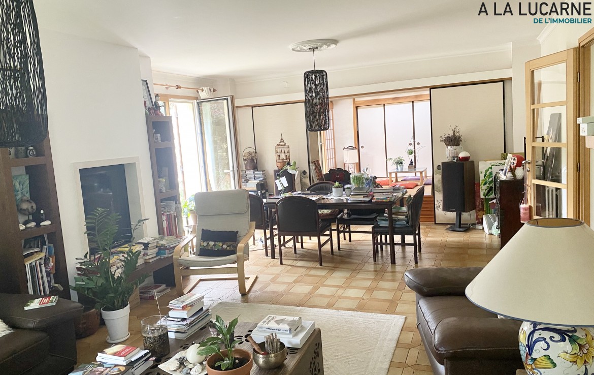 Proche Centre ville- Parc Richelieu - Exclusivité - Emplacement unique et rare au cœur même du parc historique privé de l'ancien château du Cardinal Richelieu, à 5 mns à pied du centre ville et à proximité immédiate des écoles, collèges, lycée. Vaste maison familiale de 190 m² habitables édifiée sur une parcelle de 500 m² arborée et sans vis à vis. Entrée, agréable pièce de vie exposée sud sud ouest, cheminée avec insert, prolongée par une extension de 37 m² d'inspiration japonaise. Tatamis, cloisons shoji, mezzanine avec chambre le tout dans un espace zen. Cuisine fermée dînatoire, chambre, salle de bains et toilettes. A l'étage, 3 chambres, 2 salles de bains, toilettes et dressing. Le sous sol est total avec bureau, salle de jeux , buanderie et rangements, toilettes, garage et cave à vins. Dans un écrin de verdure avec des arbres centenaires à visiter sans tarder! Travaux à prévoir.. Le prix indiqué comprend les honoraires de négociation, à la charge de l'acquéreur, qui se montent à 3,5% TTC du prix affiché.