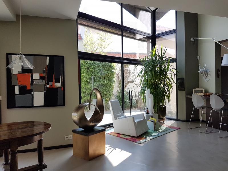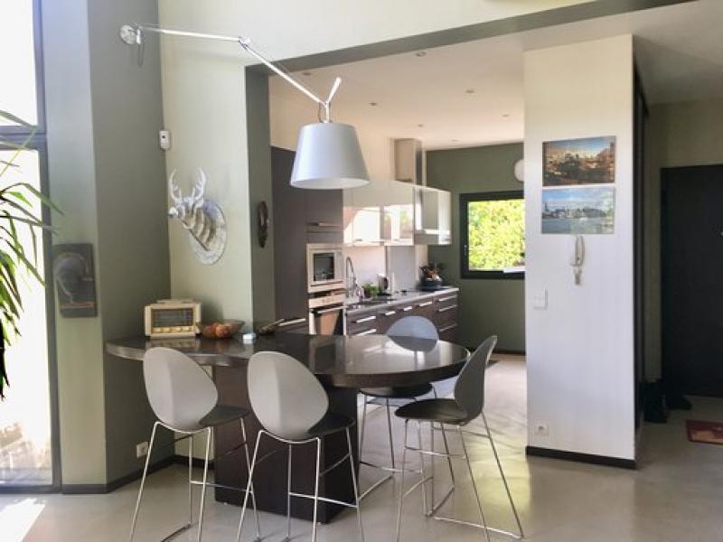 RUEIL MALMAISON - Dans un quartier recherché pour ses écoles, sur un terrain de 510 m2, superbe maison d'architecte non mitoyenne de 195 m2 (310 m2 utiles). Entrée, vaste séjour cathédrale avec cheminée de plain-pied sur terrasse et jardin, deux chambres, une salle de douche et un wc. A l'étage, une belle suite parentale avec dressing, salle de douche et wc; deux chambres, une salle de bain et un wc. Sous-sol total comprenant un salon home cinéma, une buanderie, une cave et un atelier. Un garage et stationnement extérieur. Beaucoup de lumière pour cette maison aux belles prestations.. Le prix indiqué comprend les honoraires de négociation, à la charge de l'acquéreur, qui se montent à -102,56% TTC du prix affiché.