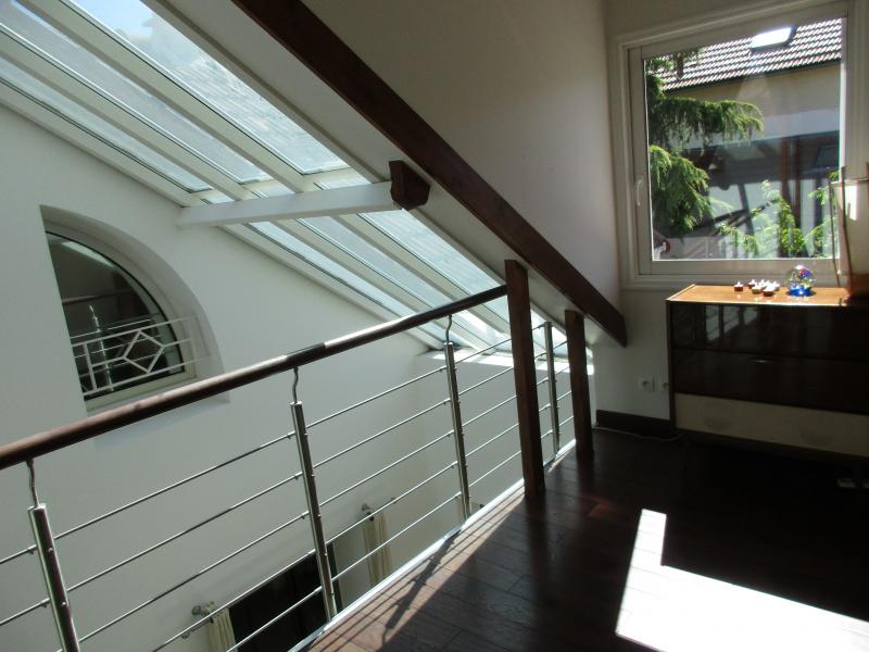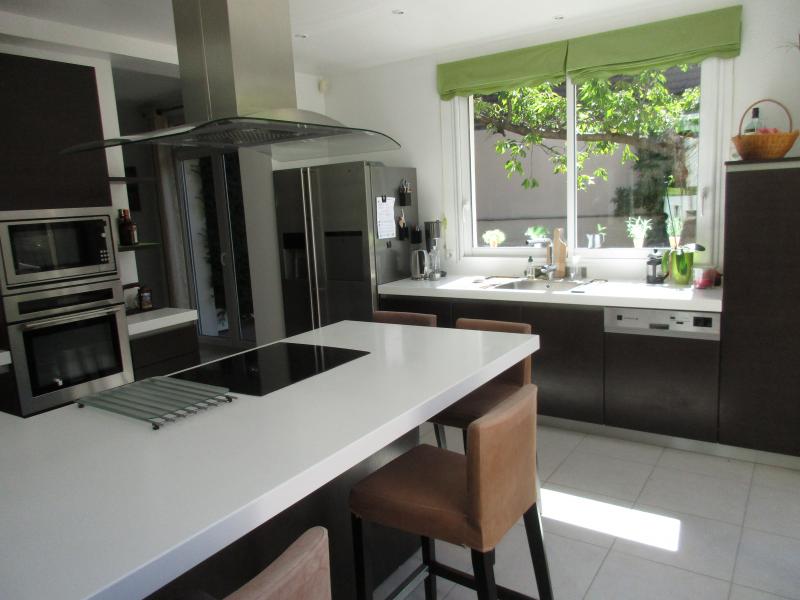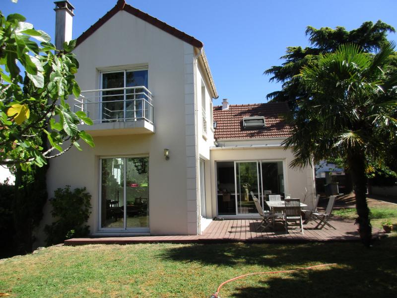 RUEIL MALMAISON - A proximité du centre ville, dans une petite rue privée, grande et belle maison contemporaine, non mitoyenne, pleine de lumière et au calme. Beaux espaces de vie avec avec insert de plain-pied sur la terrasse et le jardin expose sud-ouest sans vis-a-vis, grande cuisine américaine équipée, 7 chambres dont une au rez-de-chaussée avec salle de douche attenante, 2 salles de bain et 2 salles de douche, dressing et nombreux placards, sous-sol total aménagé : buanderie, cave à vin... Un grand garage/atelier. Travaux recents aux prestations de qualité.