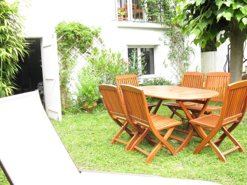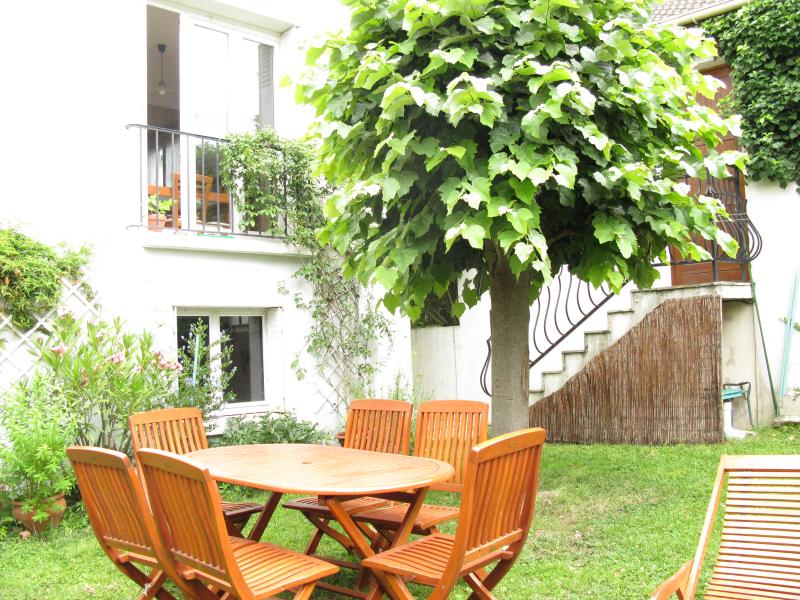 Le centre ville à 10 mn et le RER à 5 mn à pied, dans petite rue au calme,maison en bon état de 85 M² avec un sous sol en RdJ de 40 M² composée d'un double séjour avec cuisine ouverte, 3 chambres, grande SdB, WC séparés, bureau/chambre d'amis avec douche en rez-de-jardin de plain pied sur jardin clos arboré orienté sud. Grande buanderie, espace de rangement.Double garage.Proche écoles et commerces. Le prix indiqué comprend les honoraires de négociation, à la charge de l'acquéreur, qui se montent à 2,27% TTC du prix affiché.